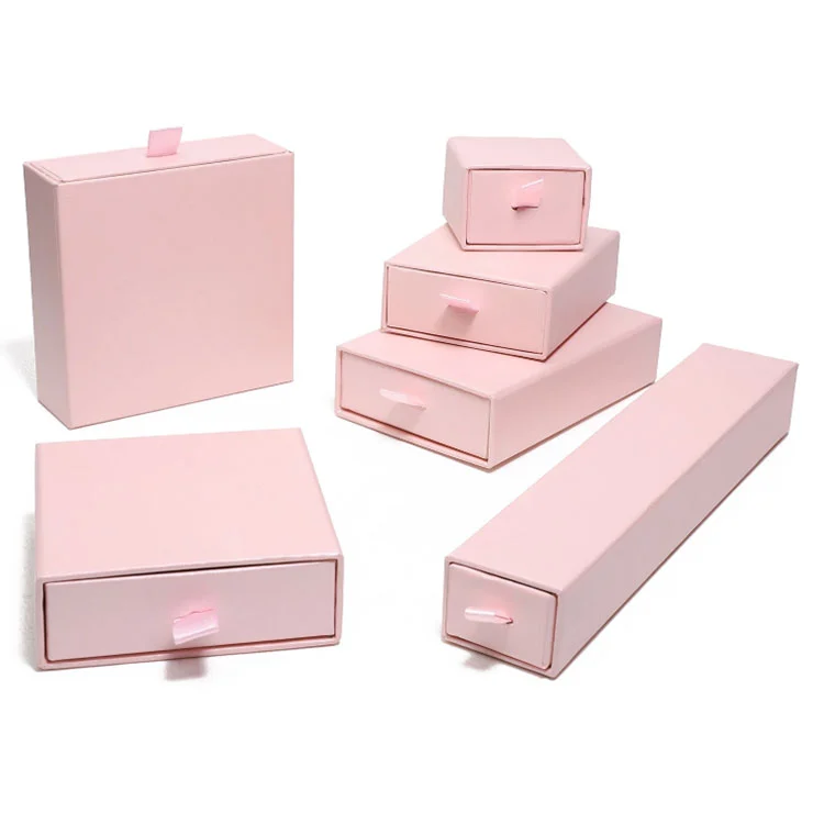 Elegant Pink Drawer Jewelry Paper Packaging Box, Tillverkare - Factory Direct Price - Ny kraft Perfekt för smyckemärken, presentbutiker eller marknadsföringsförpackningar. Flera lådstorlekar för flexibel förvaring av smycken, mjukt sammet foder skyddar känsliga föremål och pull-tab design för bekväm åtkomst.