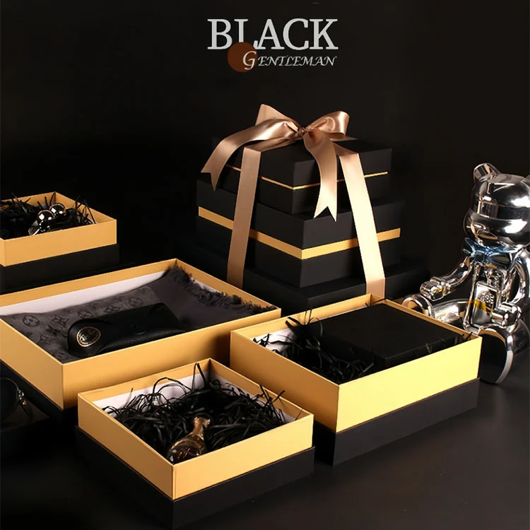 | Produktnamn | Styv presentförpackning i flera storlekar med guldband och lock |